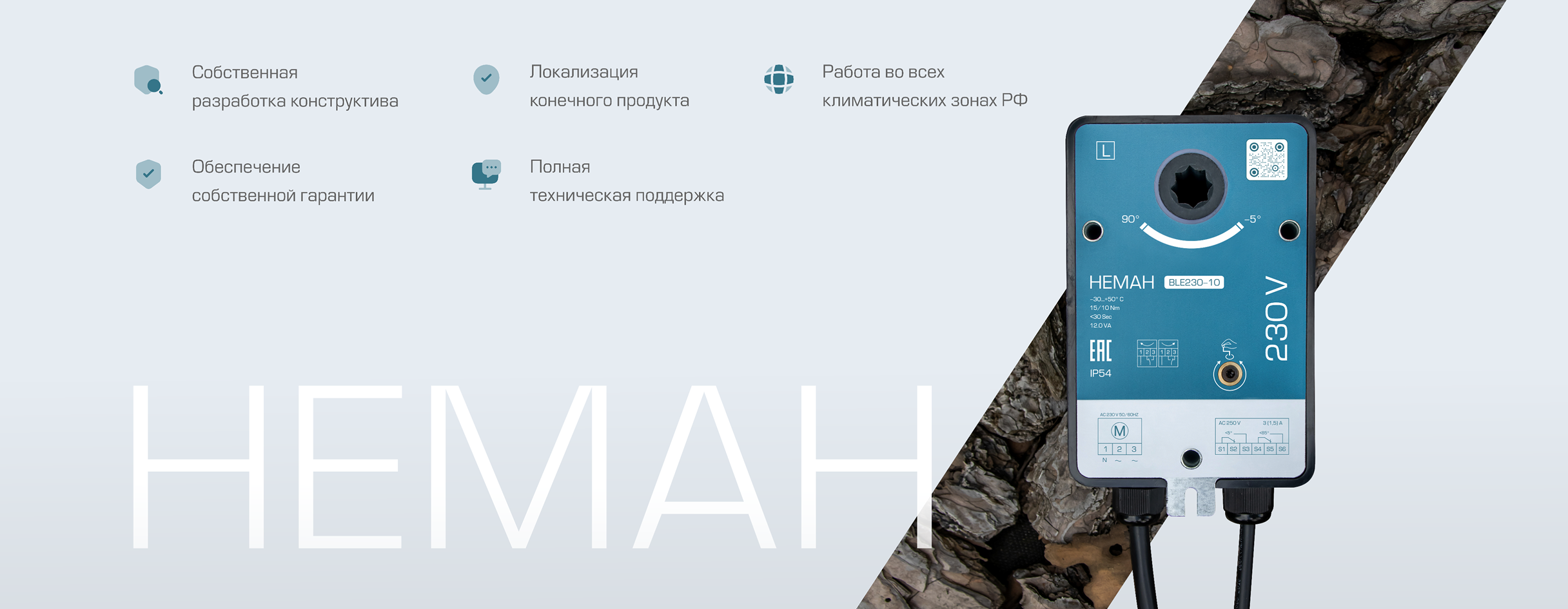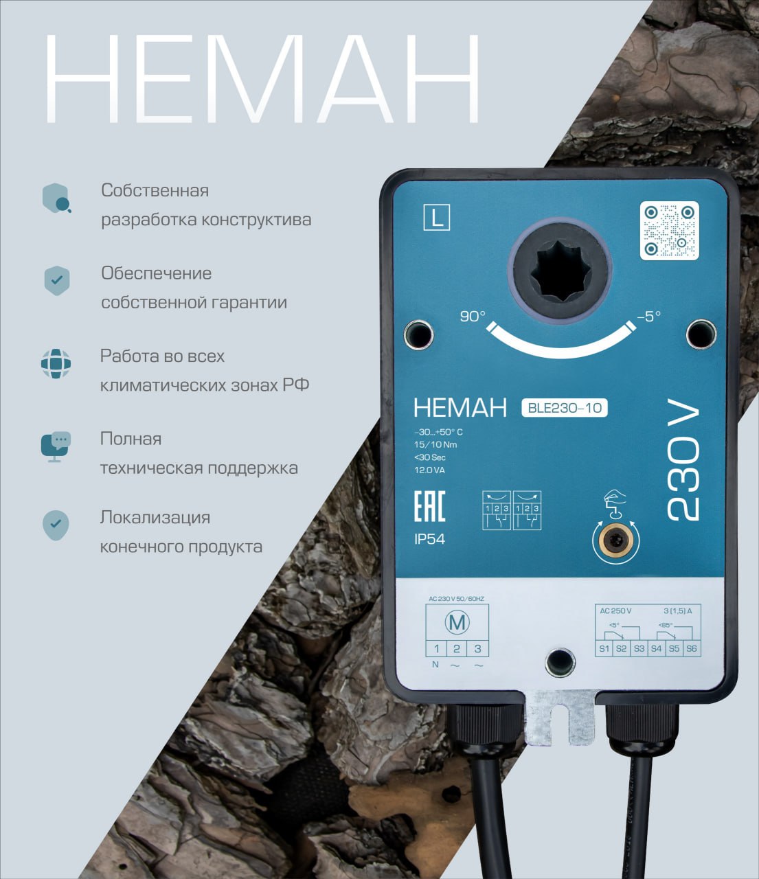 НЕМАН – это электроприводы отечественного производства для воздухорегулирующих и противопожарных клапанов. Это собственная разработка модельного ряда, учитывающая специфику и климат всех регионов РФ, включая морские прибрежные зоны и Крайний Север